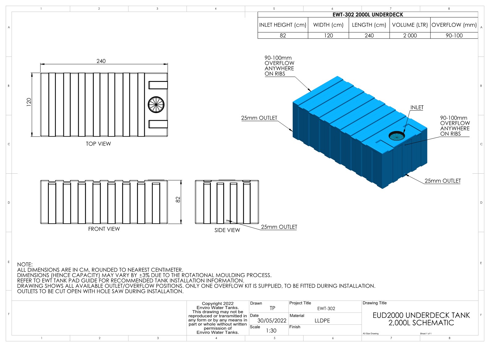 7. Polyethylene tanks will expand when filled. Allowance for expansion is required when plumbing work is carried out.