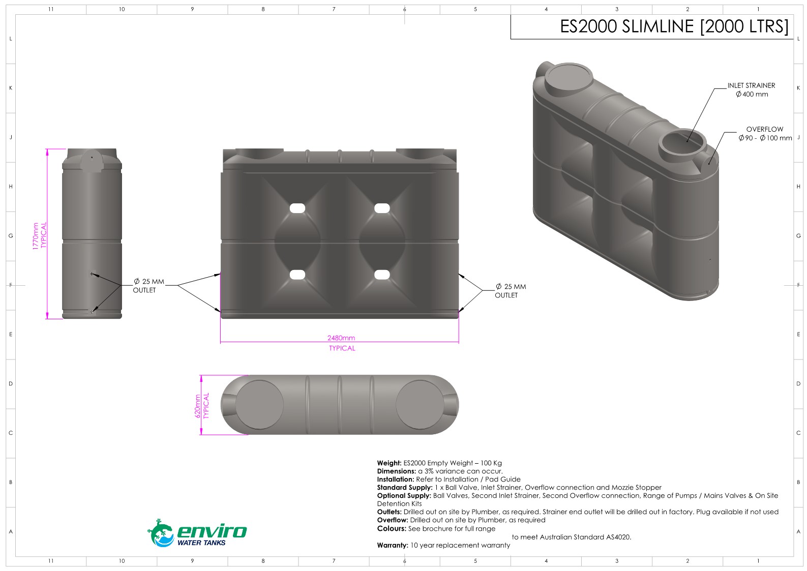 2. Tanks must be on a level base of concrete 100mm thick with a minimum strength 25m.p.a. and one layer of F72 reinforcement.