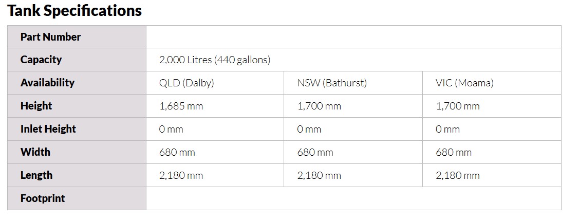 As the 2000 Litre Tank are approximately 100kg. Minimum 2 strong adults are required at time of delivery to help move the tank into position. If there is no help on hand at time of delivery, tanks will be offloaded in a sensible position close to the transport vehicle. Please note drivers will not lift tanks due to OH&S.