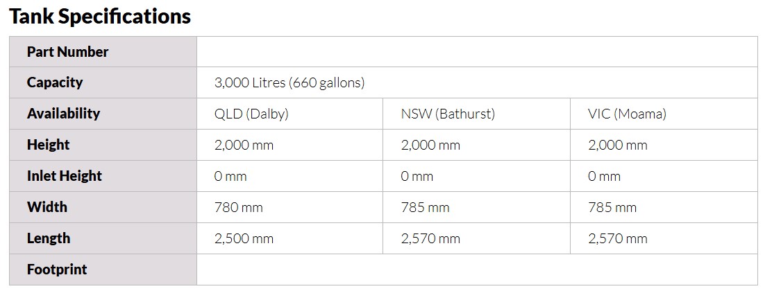 The 3000 Litre Water tank comes with a 25yr Manufacturers Warranty.